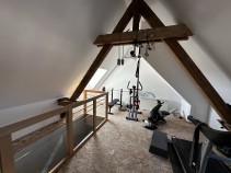 - Aux combles : une pièce polyvalente pouvant faire office de bureau, salle de jeux ou chambre d'appoint, une chambre avec dressing.