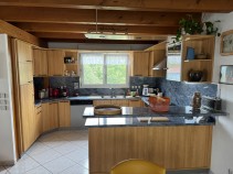 - au rez-de-chaussée : une entrée avec placards, un WC, un salon/salle à manger, une grande cuisine équipée ouverte ;