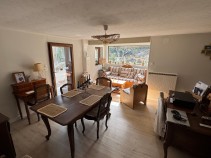 Au rez-de-jardin : un dégagement avec placards, une salle d'eau avec WC, une grande pièce avec accès à la véranda, une chambre, une buanderie ainsi qu'un abri pour le stockage du bois.
