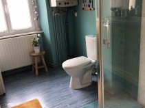 au 1er étage : un dégagement, une salle d'eau avec WC, un espace cuisine ouvert sur séjour, une chambre, un débarras ;