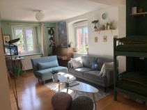 Dans petit immeuble, appartement type F2, situé au 1er étage, d'une surface habitable de 49.75 m2, comprenant :